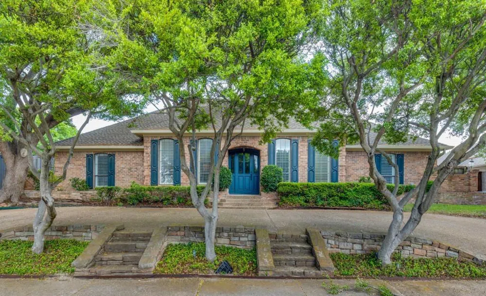 Wonderful five bedroom, 3.5 bath home that is zoned for desirable Prestonwood Elementary. Nestled under beautiful trees and elevated off the street in the highly sought after Prestonwood neighborhood, this traditional home overlooks a stunning greenbelt and park. Tall ceilings, hardwood floors, stainless appliances, vaulted ceilings, and the wall over windows overlooking the pool and patio are just a few things not to be missed. The primary suite has doors that open to the patio, an updated primary bathroom and a walk-in closet. The family room with the vaulted ceilings provides great space for additional entertaining or flex space. Step outside and enjoy an evening on the covered patio overlooking the pool and fountain. 3 car garage with extra storage.